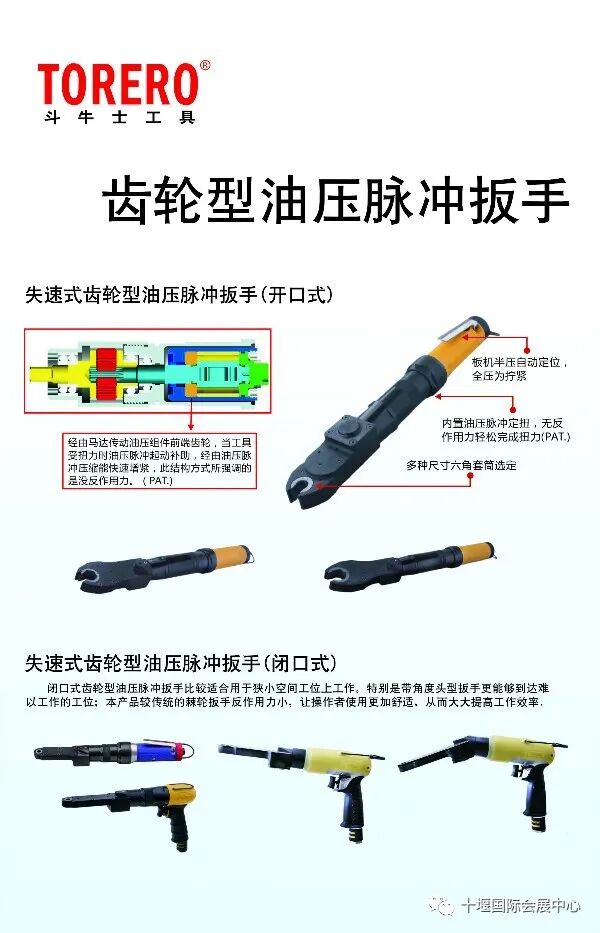 湖北优威工业装备有限公司,在2020年的汽配商品交易会招展启动后预定了展位,在此提前预祝湖北优威工业装备有限公司在2020年中国(十堰)汽车汽配商品交易会取得好的成绩,多接订单,增加成交额。 湖北优威工业装备有限公司经营扭矩检测设备、气动工具、气动套筒、油压脉冲工具、液压工具、扭力扳手、电动工具、电动伺服工具、机电设备、磨具磨料及耗材等工业品。合作品牌有:美国IR英格索兰工具、德国FEIN泛音电动工具、加拿大GENIUS 天赋工具、日本URYU瓜生工具、日本TOHNICHI东日扭力工具、台湾TORERO斗牛士气动定扭工具、台湾KI冠亿工具、台湾好帮手电动工具等国内外知名品牌。 美国英格索兰拥有百余年动力工具的设计和生产经验,是全球专业的动力工具品牌。其优越的产品性能、可靠的产品品质和丰富的产品线深受全球专业客户的青睐。英格索兰动力工具所涉及的产品和服务包括:满足工业装配、工业生产和专业维护需求的高级拧紧工具系统、气动和充电工具;配套发动机和通用机械的马达启动器和气动马达;满足工业吊装需求的手动葫芦、气动葫芦、气动平衡吊、轨道系统和夹具等;以及相关的管路附件等全套解决方案。英格索兰在产品研发设计上持续投入,致力为用户提供市场先进、创新的动力工具产品和解决方案,提高生产力。湖北优威工业装备有限公司是英格索兰在湖北的授权经销商,负责其产品的销售及售后。 我们本着“质量第一,服务至上”的经营理念,有专业的技术销售人员为客户提供完善的售前、售中、售后服务,使客户无后顾之忧。我们坚信,我们的付出一定会得到您的肯定,我们期待与您携手合作、共创美好未来! 英格索兰系列 TORERO斗牛士系列 2020年第十二届中国(十堰)汽车汽配商品交易会,与您相约金秋九月,定展火热进行中~ 十堰国际会展中心是一座集展览、会议、商务、餐饮、娱乐等多功能于一体的现代智能化展馆。目前已经成功举办了2016、2017、2018、2019年四届中国(十堰)汽车汽配商品交易会,吸引了国内外采购商团和50多家国内友好商协会组团参会,进场观摩企业观众超过5万人次,引领带动了鄂西北地区会展产业的兴旺与发展,盘活了片区经济,汇聚了八方人气,将十堰汽车文化、武当道教文化进一步推向了国际舞台。